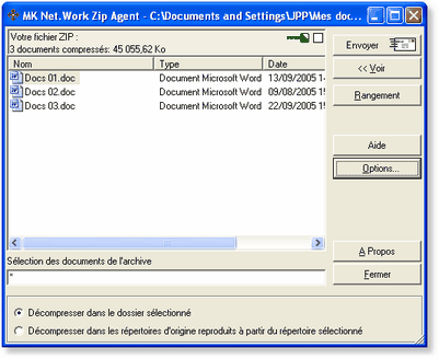 Moins ordinaire, vous pouvez ouvrir plusieurs fenêtres ZipAgent et faire des glisser-déplacer entre les différentes fenêtres ZipAgent, de fichier compressé à fichier compressé !
