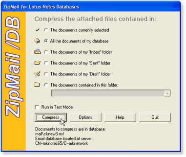 ZipMail /DB can be launched in Test Mode to display the compression and optimization results it is able to deliver. In test mode, ZipMail /DB does not modify your Notes documents.